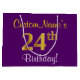 Sacola Para Presentes Grande Elegante, Roxo, Faux Dourado 24º Aniversário + Nom