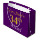Sacola Para Presentes Grande Elegante, Roxo, Faux Dourado 34º Aniversário + Nom