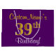 Sacola Para Presentes Grande Elegante, Roxo, Faux Dourado 39º Aniversário + Nom