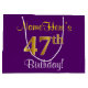 Sacola Para Presentes Grande Elegante, Roxo, Faux Dourado 47º Aniversário + Nom
