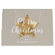Sacola Para Presentes Grande Elegante Taupe Dourada Star Feliz Natal