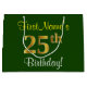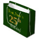 Sacola Para Presentes Grande Elegante, Verde, Faux Dourada 25 Aniversário + Nom