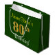 Sacola Para Presentes Grande Elegante, Verde, Faux Dourada 80 Aniversário + Nom