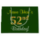 Sacola Para Presentes Grande Elegante, Verde, Faux Dourado 52º Aniversário + No
