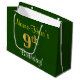 Sacola Para Presentes Grande Elegante, Verde, Faux Dourado 9º Aniversário + Nom