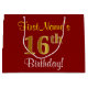 Sacola Para Presentes Grande Elegante, Vermelho, Faux Dourado 16º Aniversário;
