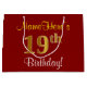 Sacola Para Presentes Grande Elegante, Vermelho, Faux Dourado 19º Aniversário;