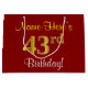Sacola Para Presentes Grande Elegante, Vermelho, Faux Dourado 43º Aniversário;