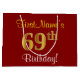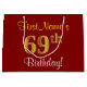 Sacola Para Presentes Grande Elegante, Vermelho, Faux Dourado 69º Aniversário;