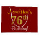 Este simples e elegante design de presente de aniversário apresenta uma mensagem personalizada como "NameHere's 76th Birthday!" (com o "76º" a ter um visual falsa/imitado de cor dourada) sobre um fundo de cor vermelha. O nome está em texto amarelo, parecido com script, e pode ser personalizado. Uma bolsa de presente de aniversário personalizada como esta poderia talvez ser usada quando se dá um presente ou presente a alguém que comemora seus setenta e seis anos. [~Z0000253]