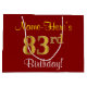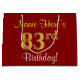 Sacola Para Presentes Grande Elegante, Vermelho, Faux Dourado 83º Aniversário;