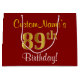 Sacola Para Presentes Grande Elegante, Vermelho, Faux Dourado 89º Aniversário;