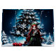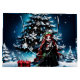 Elfo de Natal com Kitten. Numa noite de inverno encantadora, quando as estrelas brilham como brilhantes diamantes no céu, uma elfo é o centro de um cenário mágico. Seu cabelo comprido e flamejante cai em ondas macio sobre seus ombros e enquadra seu rosto delicado, enquanto suas orelhas pontiagudas espiam misteriosamente de seu cabelo. Ela veste um vestido preto elegante coberto por uma camada verde brilhante - uma combinação harmoniosa de escuridão e luz. Essa cena exumenta uma calma mística, como se o tempo ficasse parado por um momento e a magia do momento afastasse todas as preocupações