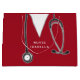 Saco único de prenda de enfermeira com escovas de hospital vermelho e ilustração estetoscópica. Editar texto para adicionar o nome da enfermeira.