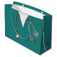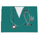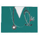 Saco de presente com temática médica criativa com esfregões de enfermeiras, um estetoscópio e um canivete suíço. Adicionar texto para personalizar.