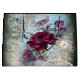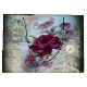 Linda, vintage, florais de rosa vermelha de jornal, apresentando um falso broche e colar de pérolas, gaiola de pássaros com arco teal para criar um estilo quic luxo, extravagante e vitoriano.