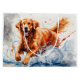 Ouro Adorável Cachorro do Retriever correndo em ondas gigantes de água neste esplêndido esboço de presentes.