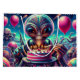 Engraçado alienígena extraterrestre comendo bolo de aniversário com balões que fazem aniversário de Gift Bags.
