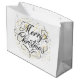 Um belo e grande saco de presentes de Natal em Dourado, Prata e Escrita Negra