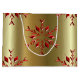 Um saco de presente de Natal elegante com um padrão de grandes flocos de neve vermelhos (ou estrelas) espalhados sobre um fundo de ouro para adicionar um toque festivo e sofisticado aos presentes de Natal deste ano.