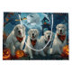 Libere o espírito assustador com esta design sombria do Dia das Bruxas apresentando um bando de cachorros sob um céu escuro e iluminado, cercado por morcegos voadores e abóboras brilhantes. Perfeito para aqueles que amam um toque de diversão terrível com seus amigos peludos!