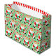 Criativo executando um saco de presentes de Natal com temas de atletismo ou um favor de festa apresentando um padrão de execução de Papais noeis engraçados em vermelho e verde.
