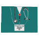 Bolsa de doação para graduação em medicina criativa para formandos médicos com esgoto hospitalar e estetoscópio. Editar texto para adicionar o nome de médico, assistente médico ou enfermeiro e as credenciais médicas.