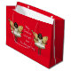 Esta bolsa de presente apresenta uma fada de Natal afro-americana com uma varinha mágica em um fundo vermelho vibrante com a inscrição: "Que o Natal te aqueça o coração o ano inteiro!"