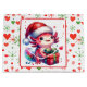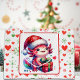 Um bonitinho cartoon axolotl temeu o saco de presente de Natal para uma criança. Um machado bonito vestindo um chapéu de Papai Noel cercado por corações e flocos de neve segurando um presente.