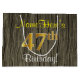 Este simples design de presente de aniversário rústico apresenta uma mensagem personalizada como "NameHere's 47th Birthday!" (com o "47º" a ter um visual falsa/imitado de cor dourada) sobre um padrão de aparência falsa de madeira. O nome está em texto amarelo, parecido com script, e pode ser personalizado. Um saco de presente de aniversário personalizado como este poderia talvez ser usado quando se dá um presente ou presente a alguém que comemora seu quarenta e sétimo aniversário. [~Z0000259]