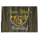 Este simples design de presente de aniversário rústico apresenta uma mensagem personalizada como "Name-Here's 76th Birthday!" (com o "76º" a ter um visual falsa/imitado de cor dourada) sobre um padrão de aparência falsa de madeira. O nome está em texto amarelo, parecido com script, e pode ser personalizado. Uma bolsa de presente de aniversário personalizada como esta poderia talvez ser usada quando se dá um presente ou presente a alguém que comemora seus setenta e seis anos. [~Z0000259]