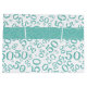 Etapa 50: personalize facilmente a etiqueta de presente e "Feliz 50º aniversário" com os modelos de texto fornecidos. Este design é um padrão aleatório teal e branco com 50 repetidos em tamanhos e ângulos variados em um impressão completo. É uma ideia divertida para um presente personalizado para uma ocasião especial. É adequado para aniversários, aniversários, ou para todas as ocasiões em que você comemora o número 50, apenas mudando o texto. Nota: A etiqueta de presente não é real; é parte do design impresso.