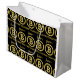 Esta saca de presente apresenta as palavras "Feliz Aniversário" em uma fonte de impressão única com letras douradas exibindo um B com um símbolo de dólar no centro neste tema e estilo de aniversário de criptomoeda. Todas as sacas de presente são feitas com papel de alta qualidade para maior durabilidade e sua escolha de acabamento fosco ou brilhante disponível em 3 tamanhos adicionais ótimos para chás de bebê, casamentos ou aniversários.
