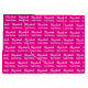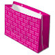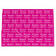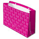 A bolsa de presente de aniversário feliz é rosa quente. Ele tem um padrão de texto para o nome do destinatário em um script e a frase Parabéns. O nome (Mostra: Elizabeth) aparece em um roteiro elegante. O texto é branco. Todo o texto pode ser editado.