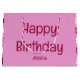 As costas e a frente são cor-de-rosa. O texto diz "Parabéns". Em Parabéns, texto de exibição adicional que pode ser alterado para o nome do destinatário. Os lados têm um padrão de flores