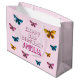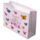 Garota-Padrão De Borboleta Rosa Bonita Feliz Aniversário Grande Saco-Presente. Celebre o dia especial do seu pequeno com esta bolsa de presente de aniversário com tema borboleta perfeita para a festa de aniversário de uma menina! Apresentando um fundo de gradiente rosa suave, borboletas coloridas esta design adiciona um toque mágico a qualquer celebração. Personalize-o com o nome do seu filho e torne o seu dia inesquecível!"