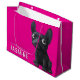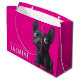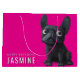 Celebrar um aniversário especial de alguém com esta adorável bolsa de presente para o Bulldog Francês! Apresentando uma ilustração encantadora de um Bulldog Francês preto contra um fundo rosa vibrante, este saco é perfeito para adicionar um toque personalizado a qualquer presente. A design é completada com uma simples mensagem de 'Parabéns' e espaço para adicionar o nome do destinatário, fazer-o como um presente verdadeiramente único e memorável. Este saco de presentes de alta qualidade é certamente impressionante, fazer sua experiência de dar presentes ainda mais encantadora. Surpreenda os seus entes queridos com um presente na moda e sincero que eles irão apreciar.