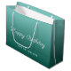 Caligrafia Verde Azul-Teal Personalizada Roteiro de Caligrafia Verde Feliz Aniversário Modelo moderno Trendy Elegante Large Gift Bag.
