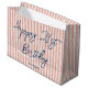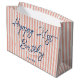 Elevem seu presente com um saco de presentes personalizado! Este design chic apresenta a tipografia de na moda, e um padrão simples de striped com uma aparência falsa de linho. Personalize o modelo com o nome e a idade do destinatário — perfeito para aniversários de marco, incluindo 18º, 21ruas, 30, 40º, 50º, 60º, 70, 80, 90 e 100º! Este elegante design combina o estilo do eterno com uma reviravolta moderna, e o texto pode ser facilmente ajustado para aniversários, feriados ou uma ocasião especial. Feito com papel de qualidade superior e disponível com acabamento mate ou brilhante. Cores impressas: azul escuro, marinho, coral natural, cor-de-rosa pêssego e branco.