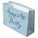 Sacola Para Presentes Grande Feliz Aniversário Qualquer Idade Nome Stripe Azul