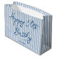 Elevem seu presente com um saco de presentes personalizado! Este design chic apresenta a tipografia de na moda, e um padrão simples de striped com uma aparência falsa de linho. Personalize o modelo com o nome e a idade do destinatário — perfeito para aniversários de marco, incluindo 18º, 21ruas, 30, 40º, 50º, 60º, 70, 80, 90 e 100º! Este elegante design combina o estilo do eterno com uma reviravolta moderna, e o texto pode ser facilmente ajustado para aniversários, feriados ou uma ocasião especial. Feito com papel de qualidade superior e disponível com acabamento mate ou brilhante. Cores impressas: azul escuro, marinho, azul natural e branco.