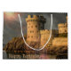 Esta grande bolsa de presente de aniversário apresenta um magnífico castelo com uma mensagem de aniversário divertida.