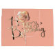 Sacola Para Presentes Grande "Feliz Aniversário" Rosa com Rosas