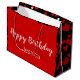 Sacola Para Presentes Grande Feliz aniversário - Script Black and Red Hearts
