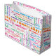Esta bolsa de presente festiva e divertida fará o aniversário de qualquer um! A frase espanhola " Feliz cumpleaños!" ("Feliz aniversário!") está em muitas fontes diferentes e cores brilhantes - algumas até laterais! - formando uma nuvem de palavras. Perfeito para auto-falantes espanhóis, estudantes, professores... ou qualquer um!