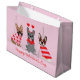 Uma bela ilustração de três Bulldog Franceses vestidos para Dia de os namorados. Perfeito para amantes de cães.