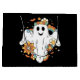 Saco de presentes com uma ilustração de um fantasma sorridente. Decorado com flores, arco-íris e morcegos.