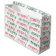 Faça todas as suas felizes com esta bolsa de presente! As palavras "feliz feliz" aparecem num estilo moderno, em vermelho e verde sobre um fundo branco.