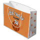Bola de Basquete Esporte Feliz Festa de Aniversário Grande Saco de Presente. Um saco de presente personalizado moderno para celebrações esportivas com uma bola de basquete, nome e idade. Você pode mudar qualquer texto na bolsa.