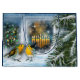 Feliz Hanukkah. Cena de inverno com Pássaros, Estrelas de David e Menorah pintando sacos para presentes. Cartões e presentes disponíveis na Categoria Feriados Judeus / Hanukkah da nossa loja.